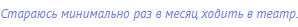 Стараюсь минимально раз в месяц ходить в театр.