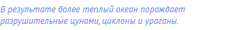 As a result, a warmer ocean generates destructive tsunamis, cyclones and hurricanes.
