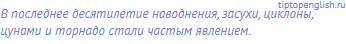 In the last decade floods, droughts, cyclones, tsunamis and tornados have become frequent.